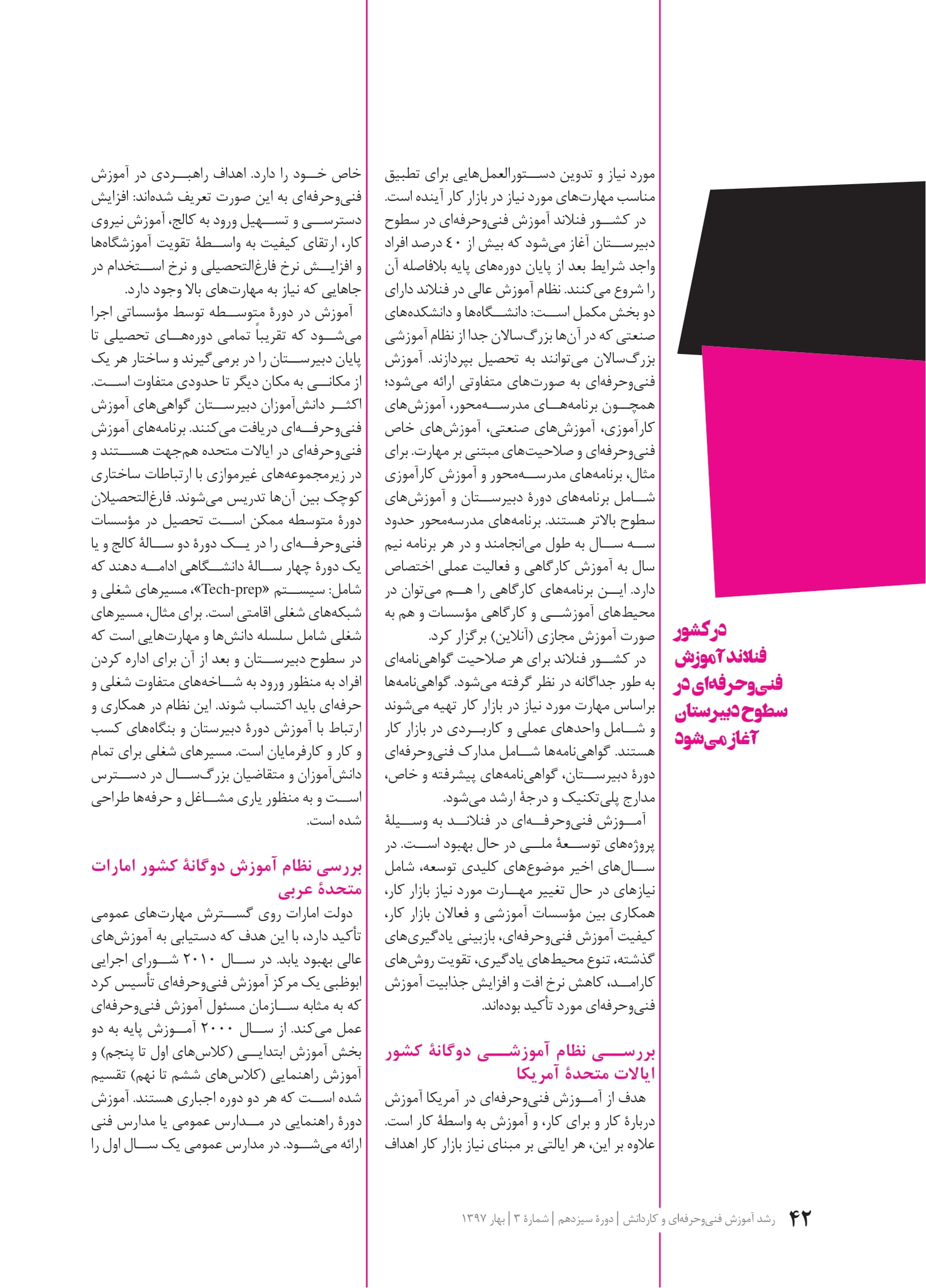 بررسی سیستم آموزش دوگانه فنی و حرفه ای کشورهای سوئد، فنلاند، آمریکا و امارات متحده عربی